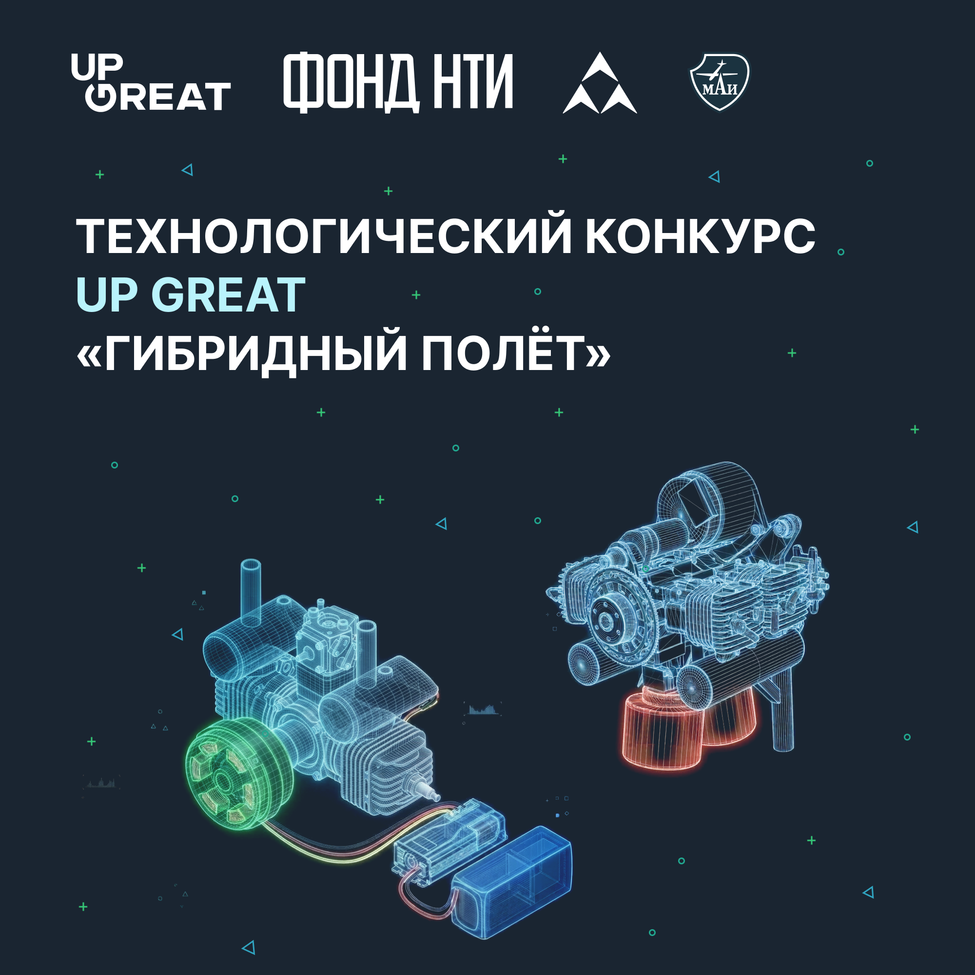 Технологический конкурс Up Great «Гибридный полёт», проводимый Фондом НТИ совместно с субоператором — Московским авиационным институтом, направлен на преодоление ключевых технологических барьеров в области гибридных силовых установок (ГСУ) для беспилотных воздушных судов (БВС).